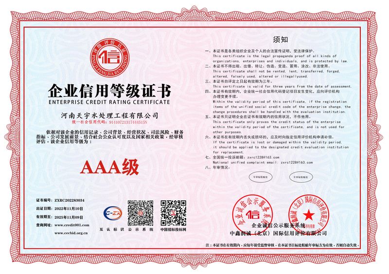 河南天宇水處理工程有限公司是一家從事水處理設備及系統的設計、制造、安裝、調試、技術開發和配套材料銷售的水處理高科技企業。本公司以歐盟技術為依托,吸收培養了大批博士研究生、工程師、工程師等科研人才。